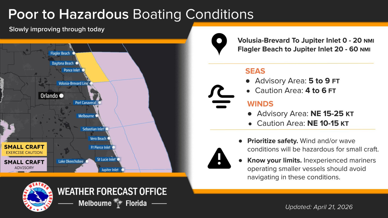 Click/tap image to enlarge | Poor to hazardous boating conditions continue across the local Atlantic today.