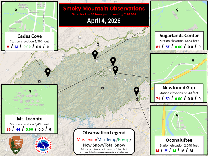 Data began being collected at: Cades Cover on 01/01/1999 || Mount